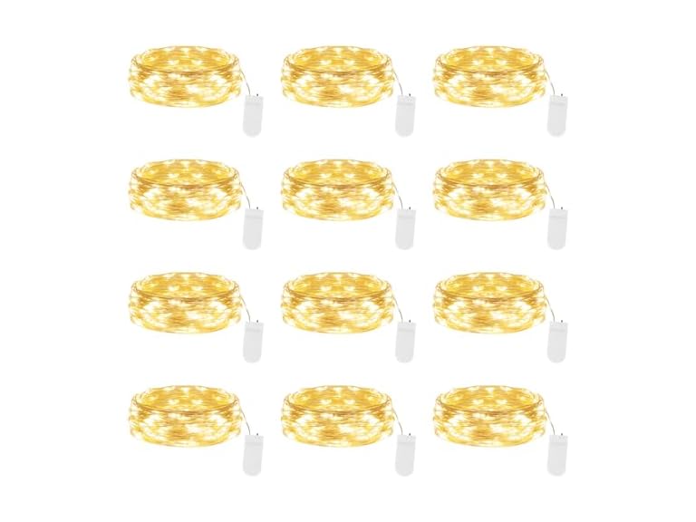 - 【12-Pack Battery Operated LED Fairy Lights】 Powered by 2 CR2032 batteries, the battery operated LED fairy light sets feature 20 energy-efficient micro fairy light LEDs on ultra-thin silver wire, creating delicate silver wire starry moon lights. Perfect as mini fairy lights for mason jars, wine bottles, vases, DIY crafts, wreaths, centerpieces, gift wrapping, and especially charming fairy lights for weddings, they effortlessly add a soft, magical glow to any special moment.