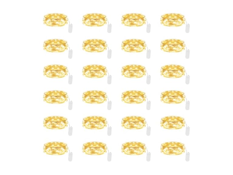- 【20 or 24-Pack Battery Operated String Lights】 Powered by 2 CR2032 batteries, these fairy lights are equipped with 20 energy-efficient micro LEDs that are perfect for use in mason jars, wine bottles, vases, DIY crafts, wreaths, centerpieces, or gift wrapping. Ideal for cozy evenings, festive holidays, or romantic celebrations, a soft and magical glow is effortlessly created, transforming ordinary moments into unforgettable memories