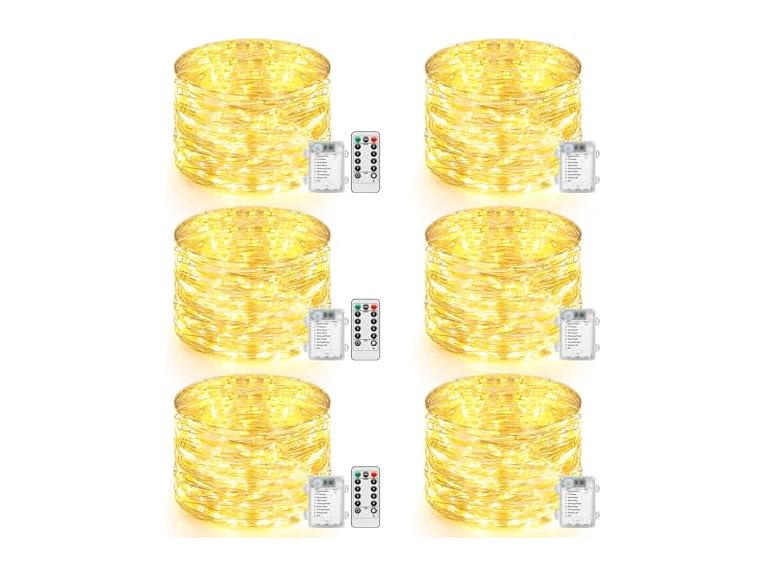- Ultra-Bright and Durable 4-Pack Battery Fairy Lights: Each box contains 4 strands of 33 ft fairy lights battery operated, each with 100 LEDs, and 2 remote controls. The twinkle lights come pre-wound on cardboard for a tangle-free experience, making setup quick and simple. Each LED string lights requires 3 AAA batteries (not included)