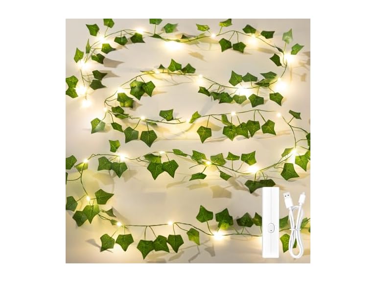 - 【Rechargeable & Eco-Friendly Ivy Vine Lights】 Say goodbye to disposable batteries with our rechargeable ivy vines with fairy lights! Featuring a 33FT ivy vine garland with 100 LEDs, these vine lights are powered by a USB rechargeable power bank (included). Eco-friendly and hassle-free, they offer an endless warm glow for bedrooms, walls, and more
