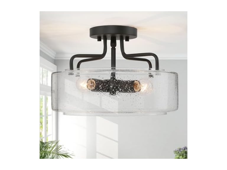 - Durable & Safe: ETL is listed for dry locations, this ceiling light is crafted from premium iron and durable seeded glass. With certified socket bases and a focus on quality, it’s built to last. Rigorous inspections ensure your product is shatter-resistant and passes a 72-hour lighting test, giving you peace of mind that your purchase will stand the test of time.