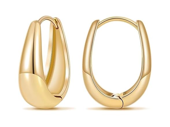 - (1) Lamdo Chunky Gold Hoop Earrings for Women, Trendy 14K Gold elliptic Plated Gold Chunky Hoop Earrings Small Thick Oval Open Double Hoop Earrings Hypoallergenic Lightweight Earrings for Women Gold Jewelry