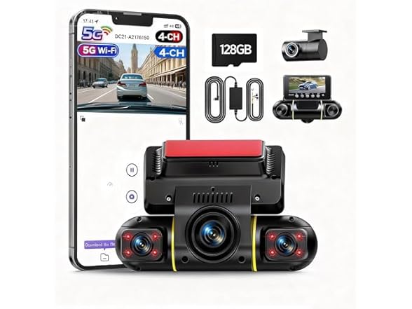 - 3 channel front dash cam with a 128GB TF Card