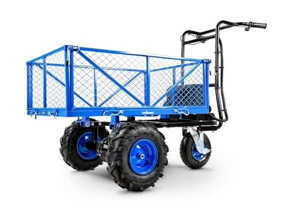 - HEAVY-DUTY PERFORMANCE: 48V Li-Ion brushless motor system, max load capacity of 500 lbs, hauling capacity of 1000 lbs, 6 cu.ft volume. Variable speeds: Forward 0-7 km/h (4.4 MPH), Reverse 0-3.5 km/h (2.2 MPH). 13" pneumatic wheels for easy maneuverability.