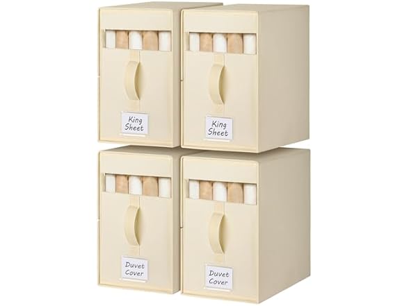 - 【Large Capacity】Our sheet storage box measure 15 in x 13 in x 7.7 in, it can effortlessly holds complete queen or king bed sheet set, 1 duvet cover and 2 pillowcases. The foldable design allows the bed sheet storage organizer to be folded when not used