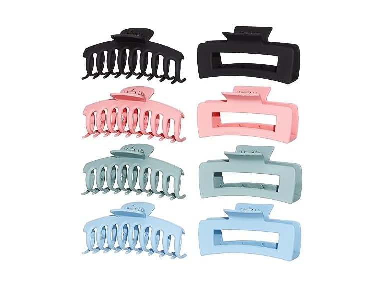 - Large Claw Clips (4.3 inches) by Nicole Miller | Pack of 8 in 4 Colors with Square and Butterfly Styles | Strong and Durable Hair Accessories for Women - Perfect for Thick