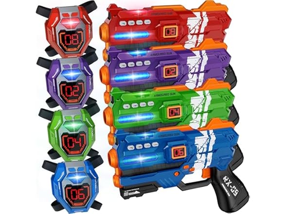 - Laser Tag Guns Set of 4 Laser Tag Guns with Digital LED Score Display Vests,Gifts for Teens and Adults Boys & Girls,Adults and Family Fun,Gift for Kids Ages 8 9 10 11 12+Year Old Boy