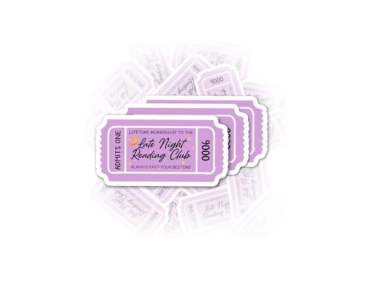 - (1) MAILAINK Set 3Pcs Late Night Reading Clubs Sticker Book Stickers Book Lovers Purple Moon Stars Stickers Waterproof Die-Cut Vinyl for Water Bottle Phone Laptop Bookish Kindle Sticker (3 Inches)