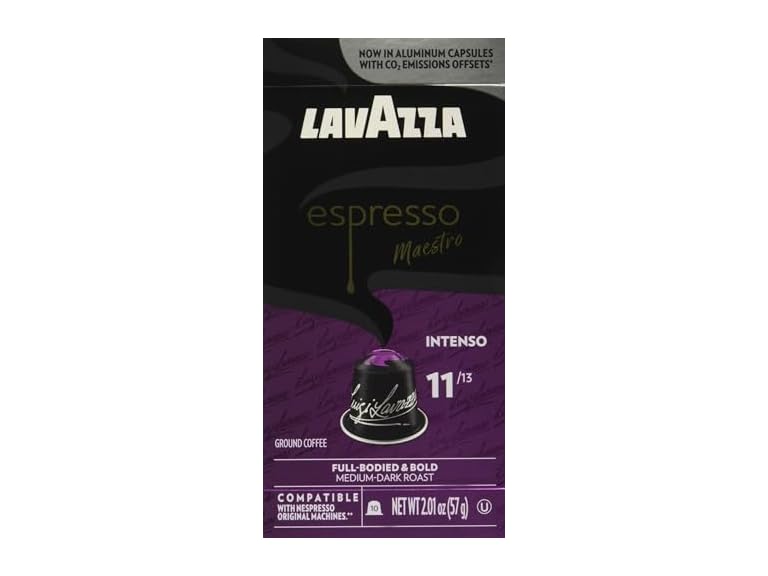 - Lavazza Espresso Intenso Medium Dark Roast Arabica & Robusta Aluminum Capsules Compatible with Nespresso Original Machines, 10 Count, Intense and full-bodied, Intensity 11 of 13