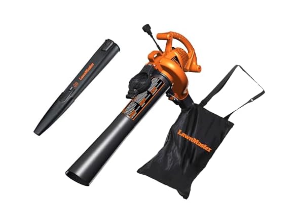 - (1) LawnMaster BV1210 3 in 1 Electric Leaf Blower, Leaf Vacuum & Leaf Mulcher with Collection Bag, 12 Amp 2-Speed Adjustment with Metal Impeller 240 MPH 380 CFM 16:1 Mulch Ratio