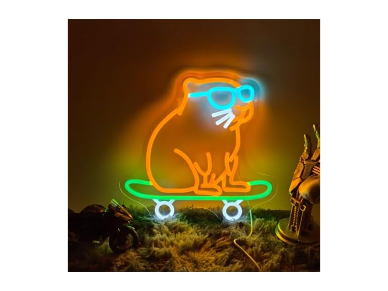 - (1) LAXUEDEER Capybara Skateboard Neon Sign USB