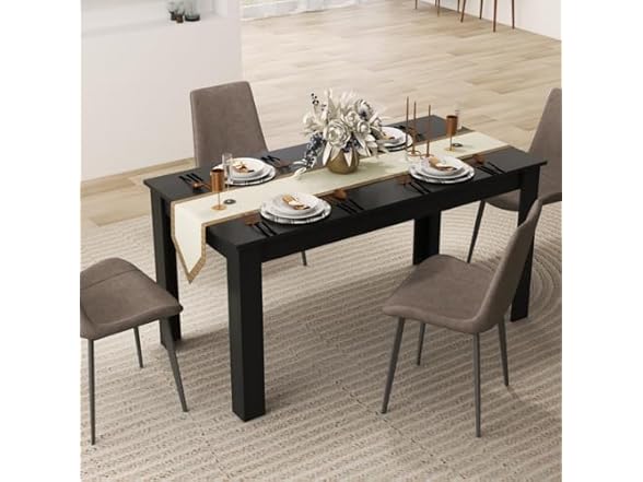 - Craftsmanship of Quality: Experience the fusion of modern design and durability with our farmhouse dinette table's smooth, refined all balck finish and realistic wood grain. Crafted from Engineered Wood, this rectangular table boasts superior strength and stability for enduring use.