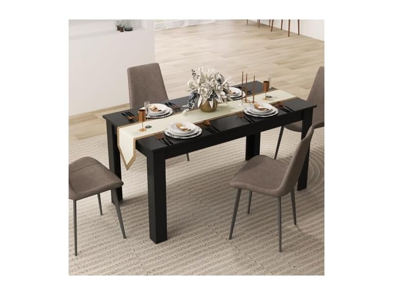 - (1) Moccha Wood Dining Table for 4-6 People, 63" Wood Rectangle Dinner Table, Modern Kitchen Table with L-Shaped Legs, 330lbs Weight Capacity, Farmhouse Dinette Table for Dining Room, Living Room, Black