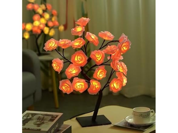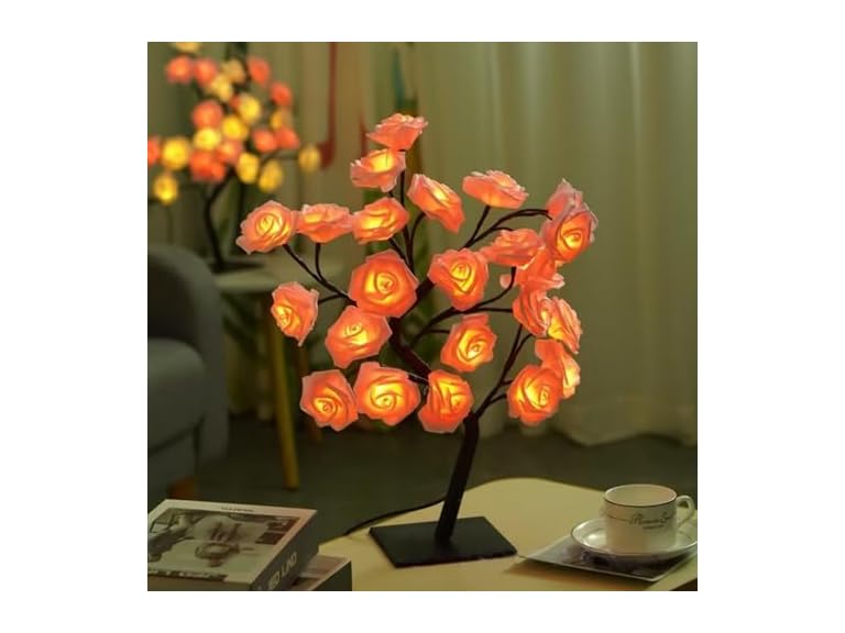 - Lifelike Rose Tree Design Featuring 20+ soft fabric roses with built-in LEDs — the blooming flower shape replicates real roses, adding romantic, cozy vibe to any space (bedroom, living room, desk).