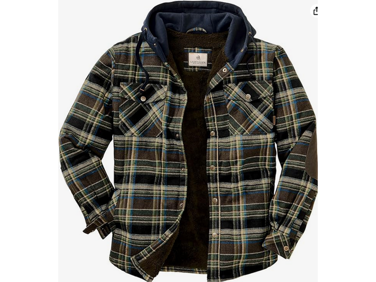 - (1) Legendary Whitetails Men's Camp Night Berber Lined Hooded Flannel Shirt Jacket