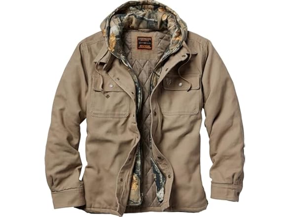 - (1) Legendary Whitetails Mens Canvas Hooded Water-Resistant Heavyweight Jacket, Khaki, Large