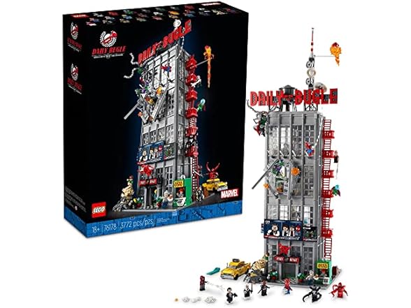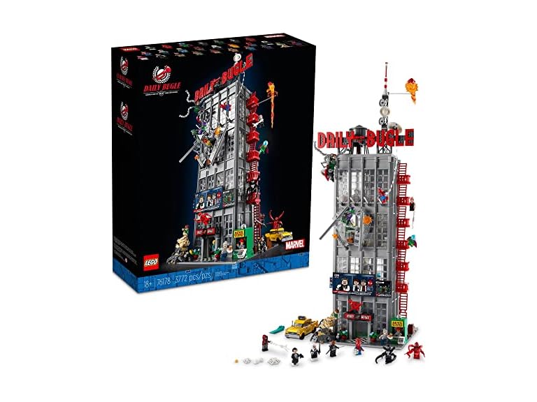 - Marvel LEGO Set - 3,772-piece, 32 in./82 cm high, 4-floor Daily Bugle office recreation with 25 minifigures for adult collectors.