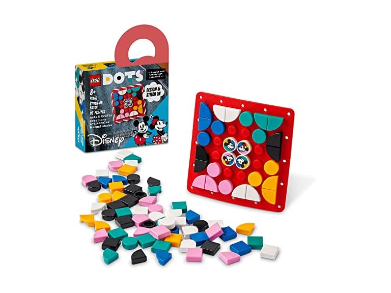 - (1) LEGO DOTS Disney Mickey and Minnie Mouse Stitch-On Patch 41963, DIY Toy Badge Making Kit to Decorate Clothes, Backpacks and More, Craft Kit for Kids Aged 8 Plus
