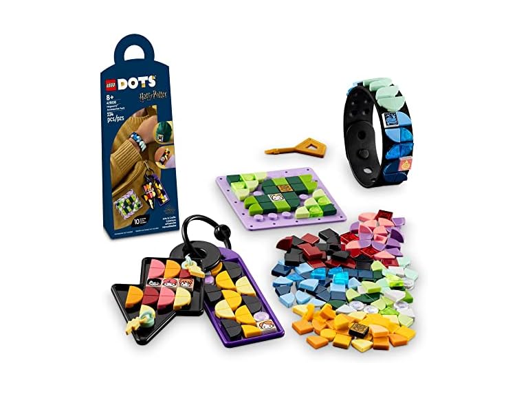 - (1) LEGO DOTS Hogwarts Accessories Pack 41808, Harry Potter Themed Jewelry Making Kit with Bracelet, 2 Bag Tags and Stich-on Patch, DIY Craft Toy Set for Kids
