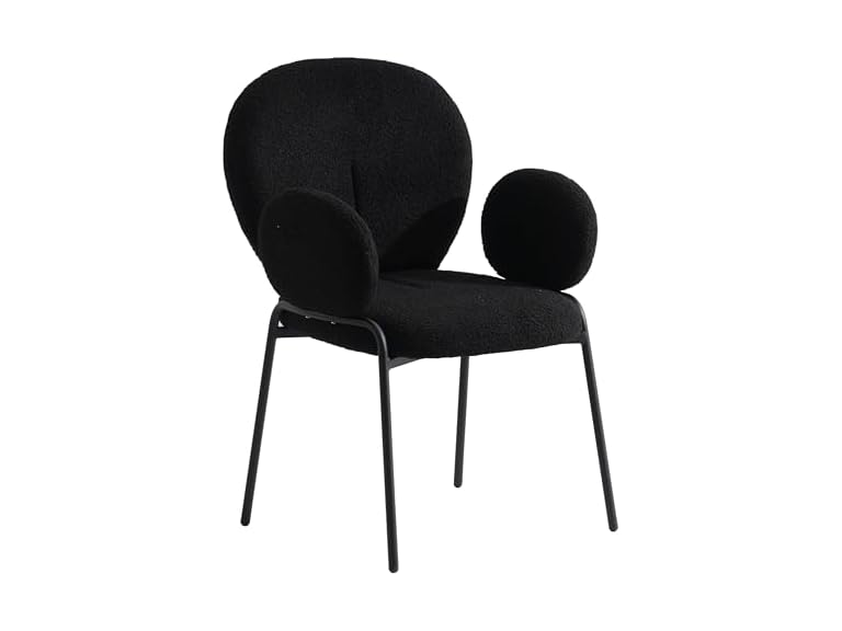 - (1) LeisureMod Celestial Modern Boucle Dining Chair Upholstered Seat and Back with Arms and Iron Frame - Choose Color