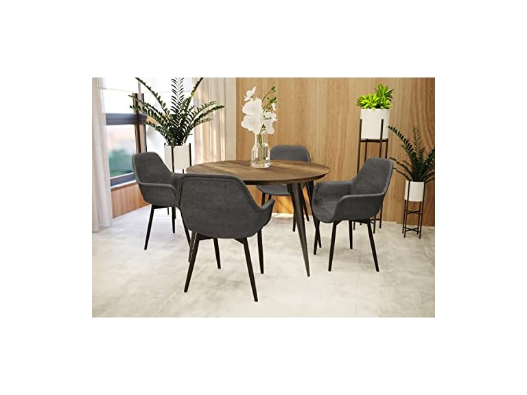 - PREMIUM MDF WOOD TABLETOP – Designed with a high-quality engineered wood (MDF) surface, this round dining table boasts a dark brown finish that mimics real wood grain, adding warmth and sophistication to your dining space.