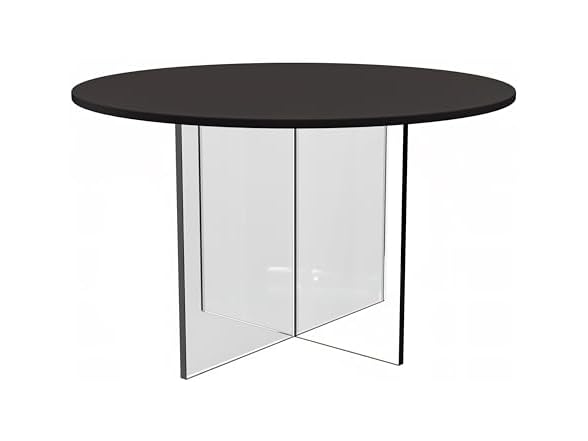- [ACRYLIC BASE] This round acrylic coffee table is supported with sturdy acrylic cross legs, this side table provides not only strength and stability but also a clear modern design. Acrylic base is a durable and transparent plastic material that offers both style and durability that will ensure that your round accent table not only looks great but also stands the test of time.