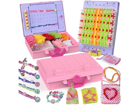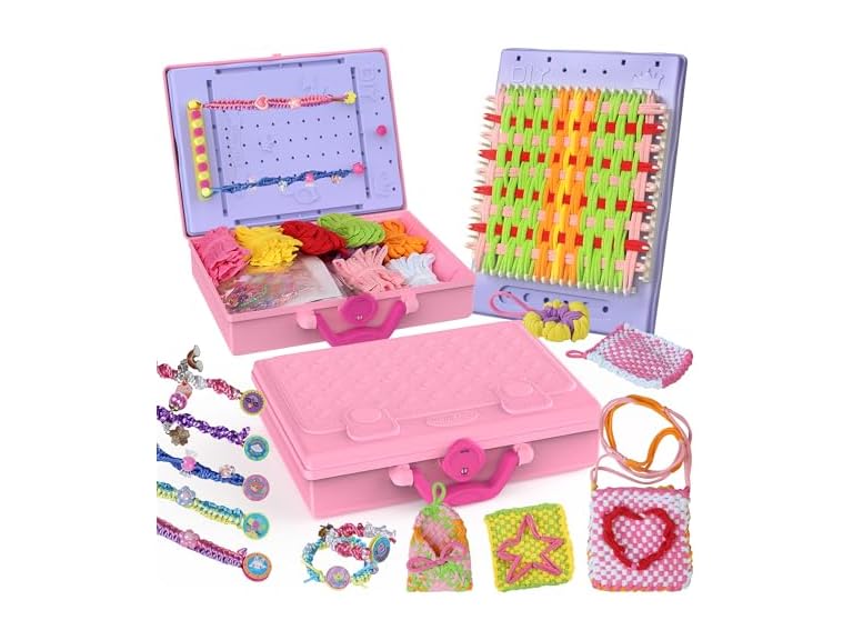 - 3-in-1 Creative Set] Includes a Weaving Loom Kit, a bracelet-making tools, and a storage box—everything needed for diverse crafting projects in one kit. It's a Good choice for sparks children's imagination, color matching and fine motor skills.