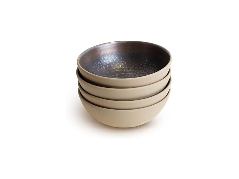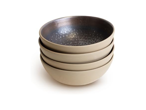 - LEMIEUX ET CIE Akita 4-Piece Bowl Set Stoneware, Bowls, Dishwasher and Microwave Safe, Dish Set for 4, Copper