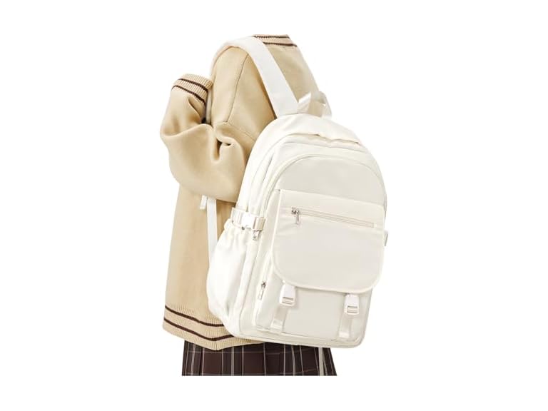 - (1) Lendolk Aesthetic School Backpack for Teens Girls Boys Multi Pocket Backpack Waterproof Book Bags Kawaii College Backpack for Women Men Leisure Backpacks(Beige)