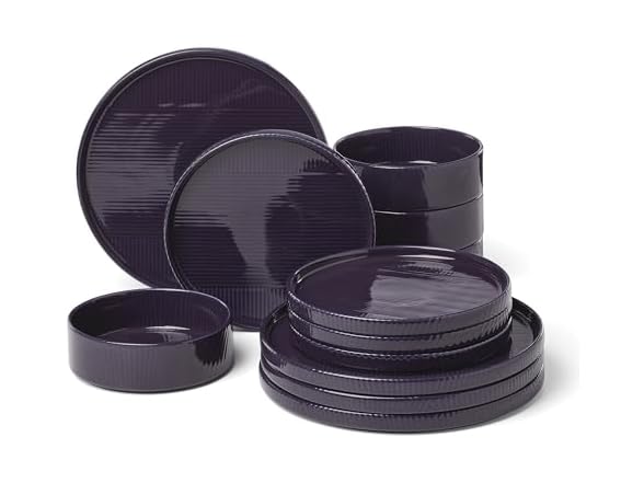 - 12-piece set includes (4) dinner plates, (4) accent plates, and (4) all-purpose bowls