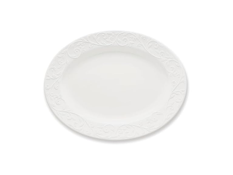 - Lenox Opal Innocence Carved Large Oval Platter -,White