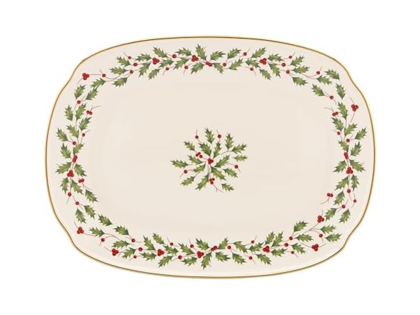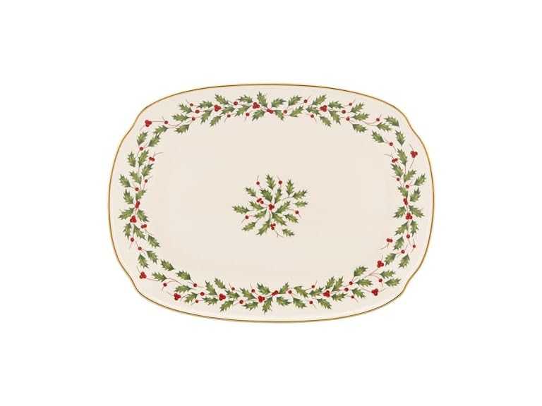 - WHY IT'S SPECIAL: Lenox's spacious Holiday serving platter includes elegant 24-karat gold accents and is framed in a holly motif with a beautiful wreath at the center.