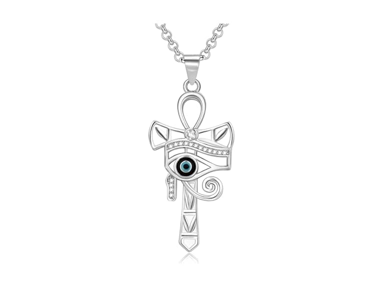 - (1) LES OSEWA Eye of Horus Necklace 925 Sterling Silver Ankh Cross Necklace Egyptian Necklace Protection Jewelry Amulet Gifts for Women