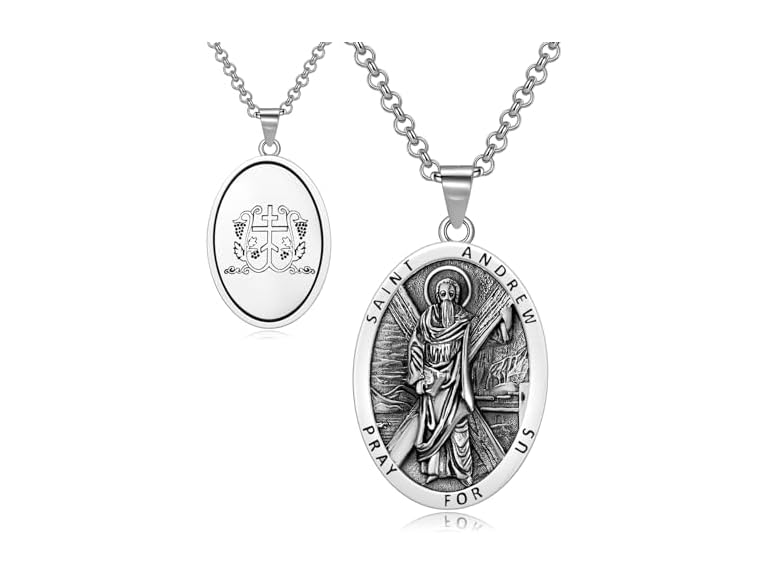 - (1) LES OSEWA Saint Andrew Necklace Sterling Silver St Andrew Apostle Medal Necklace for Men Women Pendant Jewelry