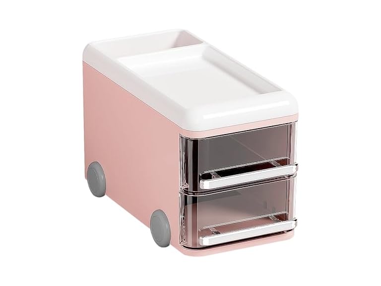 - CUTE, PRACTICAL and MULTIFUNCTION - This Desktop Storage Box has 2 drawers, 1 pen holder, 1 top tray to provide enough space to store your daily essentials for easy access, Transparent drawers allow you to quickly find what you need.Suitable for Office, School, Home living room, Makeup, study, bedroom, children's room, dining room and other spaces.