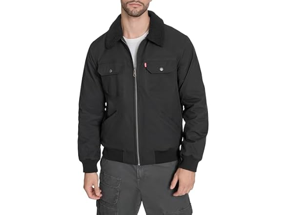 - (1) Levi's Men's Sherpa Lined Poly Bomber with Laydown Collar