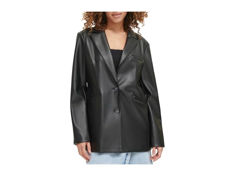 - (1) Levi's Women's Faux Leather Single Breasted Blazer, Black, 2X