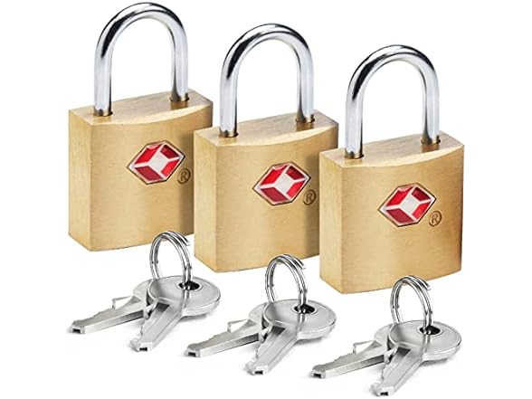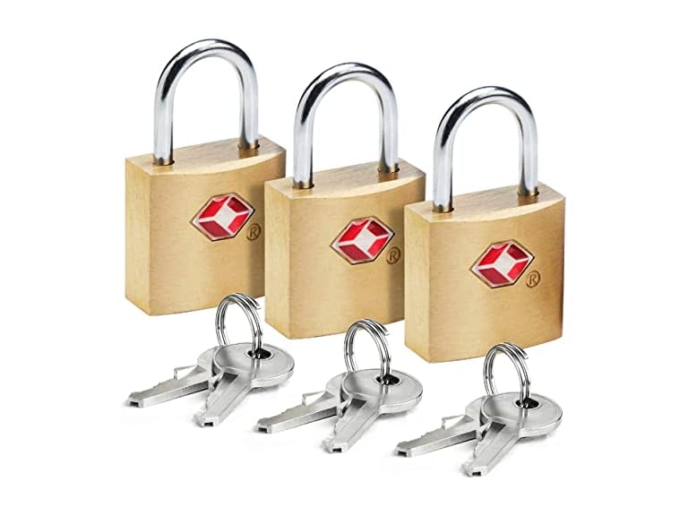 - Lewis N. Clark Mini Brass Square TSA Lock + Padlock for Luggage, Suitcase, Carry On, Backpack, Laptop Bag or Purse - Perfect for Airport, Hotel, & Gym, 2 Keys Included - 3 Pack