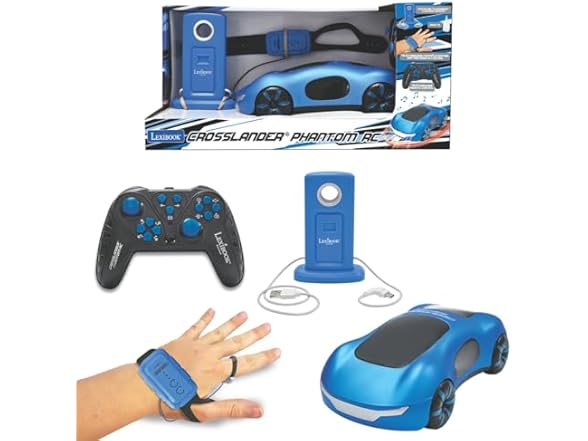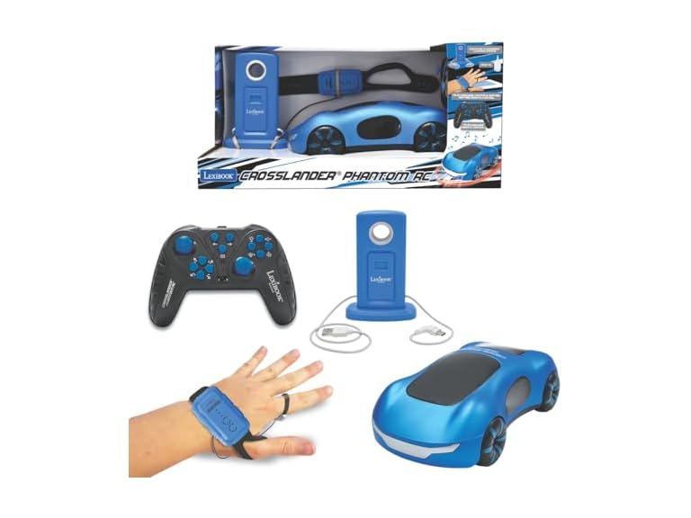 - LEXiBOOK, Crosslander Phantom RC, Remote Control Racing car with Smoke Jets, up to 15 km/h, Drift Mode, Classic and Gesture Remote Control, Sound and Light Effects, Blue, RC65
