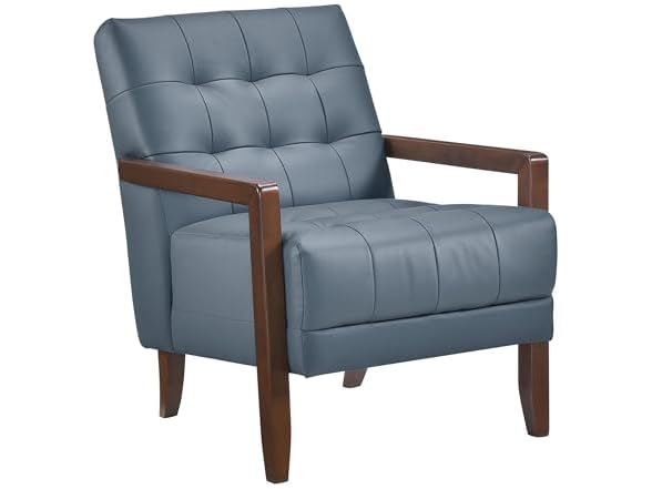 The modern-transitional framing of the Crafton Collection presents a versatile seating option for your home, whether pairing it to your existing seating group or providing a stand-alone accent seat. A walnut finish is utilized over the solid wood frame and provides complement to the eight available hues of 100% top grain leather -where the body touches, all else faux leather. The color selection includes: green, brown, blue, beige, dark gray, dark brown, orange, and black.