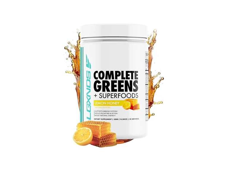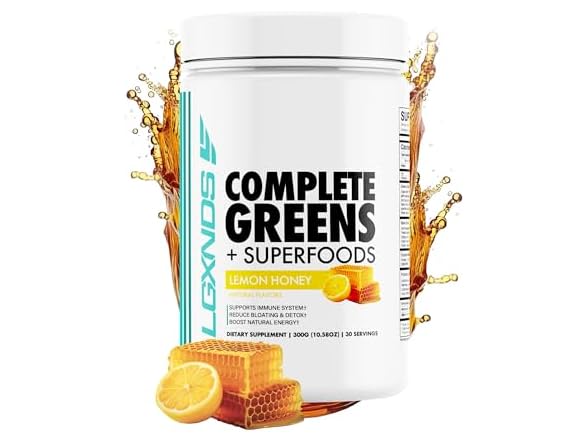 - (1) LGXNDS Complete Greens + Superfoods Powder, Organic Greens Blend with Probiotics & Digestive Enzymes, Supports Gut Health & Immunity, Gluten-Free, 30 Servings (30 Servings, Lemon Honey)