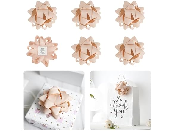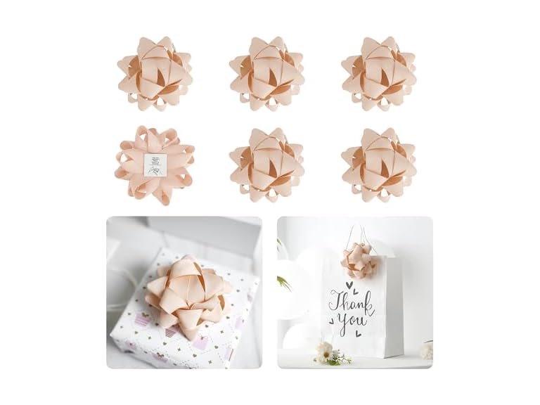 - (1) LiBongTa 4.5 Inch Rose Gold Bow for Gift Grosgrain Ribbon Present Bow, Baby Shower Bow for Gift Wrapping, Decorative Bow, Self Adhesive Bows, Gift Bow Assortment, Pack of 6