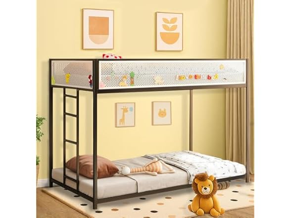- Space-Saving Twin-Over-Twin – Smart Fit for Small Bedrooms: Maximize tight spaces with a compact twin-over-twin layout that comfortably fits two kids without crowding the room. Whether in a shared bedroom, guest space, or small apartment, the minimalist metal frame opens up floor space for sleeping, play and study.