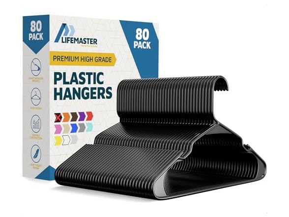 - Lifemaster Plastic Clothes Hanger Set - 80 Pieces Versatile, Lightweight, Space-Saving, Non-Slip, Slim Designed, Dry and Wet Clothes Hanger Set - Black