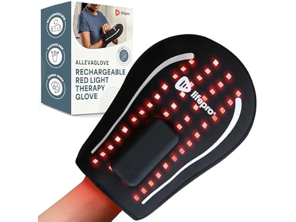 - (1) LifePro AllevaGlove Red Light Therapy for Hands, Feet & Ankles – Cordless Glove & Foot Wrap with Dual Wavelengths (660nm & 850nm) Infrared Foot Therapy, Auto Shut-Off Timer for Wellness, Relaxation & Comfort