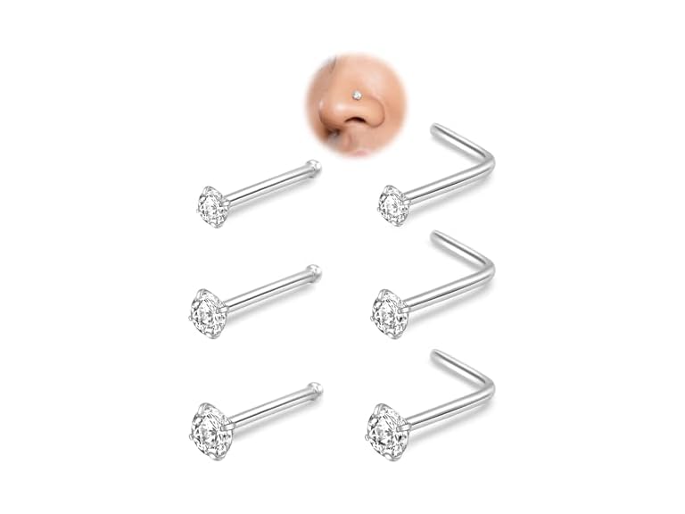 - 【This single】silvery nose stud is designed in both straight and L-shaped styles, catering to various preferences. Made without nickel, it's a hypoallergenic choice suitable for most people. The popular style and size make it a versatile accessory, perfect for those with multiple piercings or seeking a reliable and fashionable option for daily wear