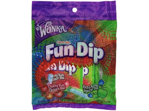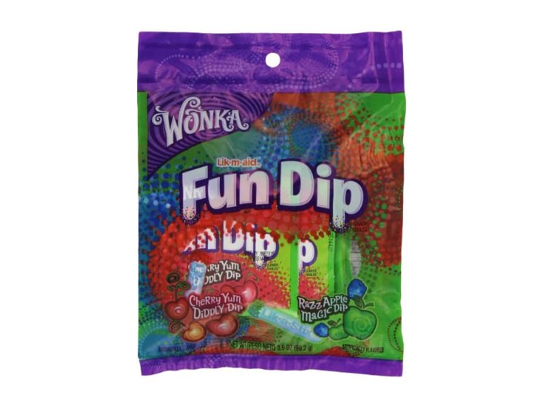 - (1) Lik-M-Aid Fun Dip Cherry Yum and Razz Apple 3.1 Ounce Bags