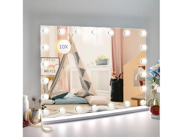 - LilyHome 24.4"x 20.4" Vanity Mirror Makeup Mirror with Lights,10X Large Hollywood Lighted Vanity Mirror with 22 Dimmable LED Bulbs,3 Color Modes,Touch Control for Bedroom,Tabletop or Wall-Mounted