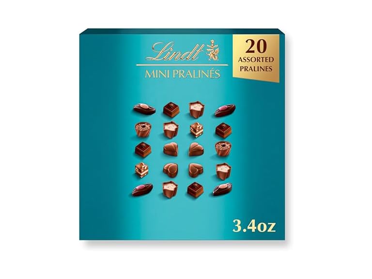 - 3.4 oz Box of Lindt Mini Pralines, Assorted Chocolate Pralines with Premium Filling