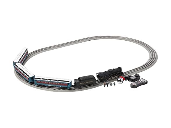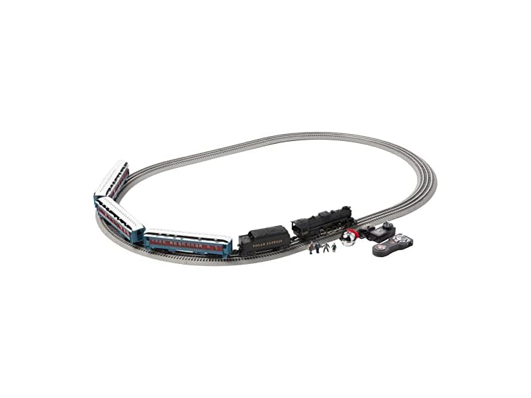 Immerse yourself in an iconic world of The Polar Express with the Lionel Polar Express Electric O Gauge Bluetooth 5.0 Model Train Set with Remote. This set has been upgraded with Bluetooth 5.0 technology that allows you to operate your train using voice control and gives you the option to record and live stream your own custom announcements. Set includes (1) 2-8-4 Locomotive, (1) Tender, (2) Coach Cars, (1) Observation Car, (4) Articulated Movie Character Figures, (8) Curved O36 FasTrack sections, (1) FasTrack Terminal section, (1) Straight Ten Inch FasTrack Plug-Expand-Play Power Lock on section, (2) Straight Ten Inch FasTrack sections, (1) Wall Pack Power supply, (1) LionChief Remote for Locomotive, and (1) Polar Express Bell. Operation Technology via the Lionel LionChief App includes Bluetooth - Operates your train via any compatible smart device. Lionel Voice Control (LVC) - Runs your locomotive by speaking commands into a smart device. Voice Streaming & Recording (VSR) - Records your own voice to generate custom train announcements, or stream voice live through engine. RailSounds System controls steam chuffing, background sounds, whistle, bell, and user activated announcements. FasTrack System features snap together locking mechanism for tight, reliable connections. Features an electric locomotive controlled by remote, a powerful maintenance-free motor, diecast metal locomotive body, On/Off switch for smoke & sounds, puffing smoke, operating couplers, steam chuffing and background sounds, whistle, bell, user-activated announcements, operating headlight, two traction tires, silhouettes in windows, and interior lighting. Remote control requires (3) AAA Alkaline Batteries for operation (not included). Phillip screwdriver required (not included). Lubricate wheels, axles, & linkage regularly. Wipe with a soft cloth occasionally to clean. Remove all batteries when not in use for an extended period of time. Recommended for ages 14 years and up.